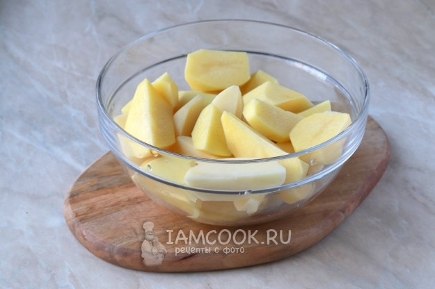 Картофель очистите и помойте под холодной проточной водой. Крупные клубни разрежьте на четыре части, средние - пополам.