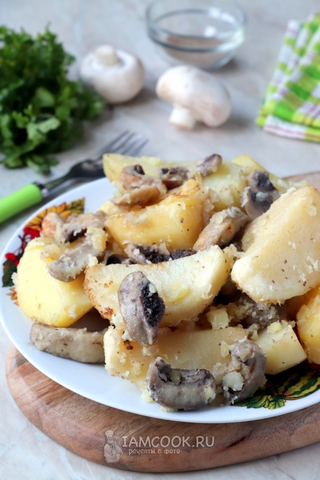 Запеченная в рукаве картошка с шампиньонами - вкуснейшее блюдо, которым можно накормить всю семью. Его можно подавать и на обед, и на ужин. Такой способ приготовления подкупает меня своей простотой и итоговым результатом. Ведь картошечка просто тает во рту, а грибочки с луком дополняют эту вкусовую гармонию.