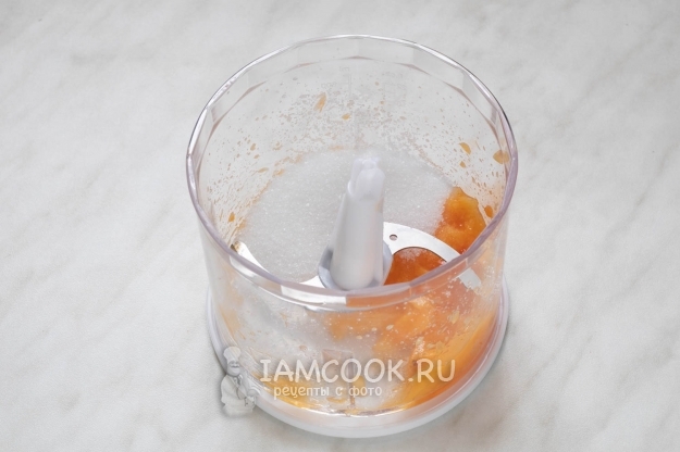 Измельчаем очищенную хурму вместе с сахарным песком.