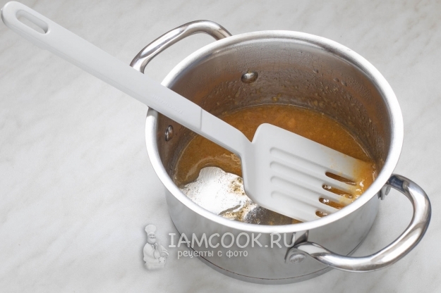 Варим из пюрированной с сахаром хурмы густой сироп, хорошо отделяющийся от дна кастрюли.