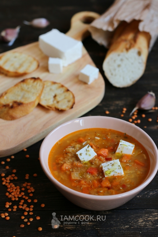 Суп получается густым, наваристым, с нежной кремовой чечевицей, которая дает супу помимо вкуса еще очень красивый цвет. Разливаем вкусный греческий суп под названием факес по тарелочкам. Если хотите, то положите в каждую тарелку фету, нарезанную кубиком, сбрызните оливковым маслом и посыпьте орегано. К супу также хорошо будет подать кусочки белого хлеба, подсушенные на гриле и натертые зубчиком чеснока.