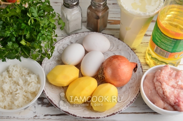 Подготовьте все необходимые продукты. Рис можно сварить заранее.