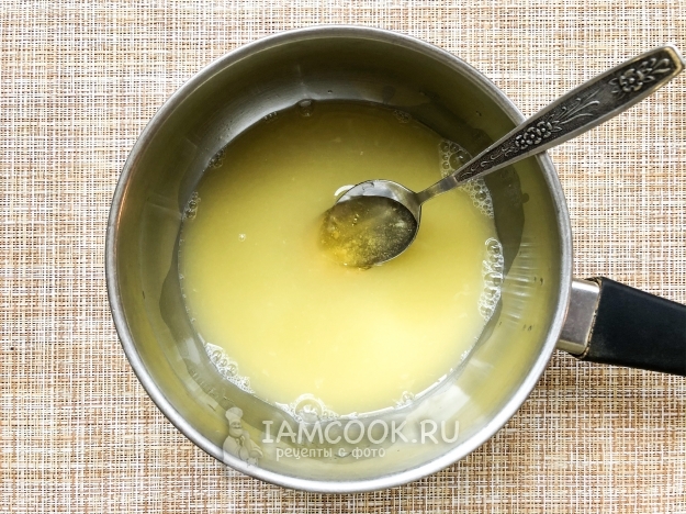 Перелейте сок в сотейник и добавьте мед. Нагрейте на плите до растворения меда, но не кипятите.