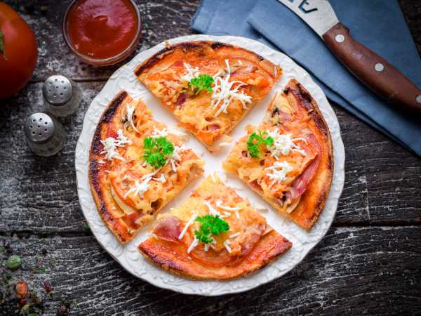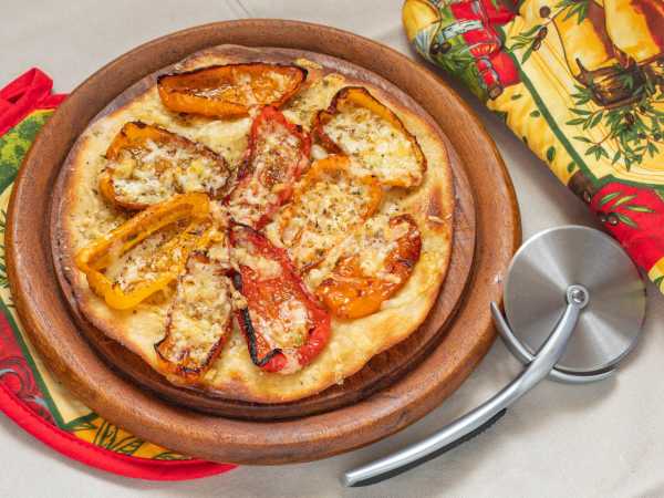 Хотя в общем и целом я предпочитаю тонкие пиццы, пиццу с каперсами я настоятельно рекомендую делать толстенькую. Ну, не совсем, конечно, такую, чтобы её можно было только в форме выпекать, но всё равно не ту, под которую тесто катают почти прозрачно. Сориентировались? Я в данном случае растягивала тесто руками, чтобы получить более пористую структуру.