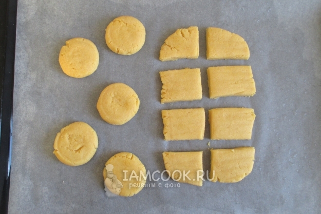 Сформируйте печенье простой формы (круглое или прямоугольное) толщиной около 1 см.