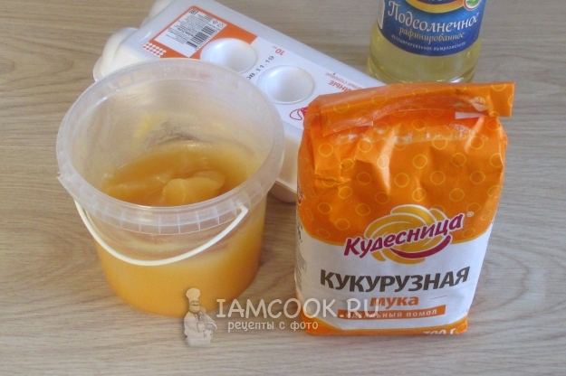 Для печенья (ПП) из кукурузной муки с мёдом подготовьте ингредиенты по списку к рецепту.
