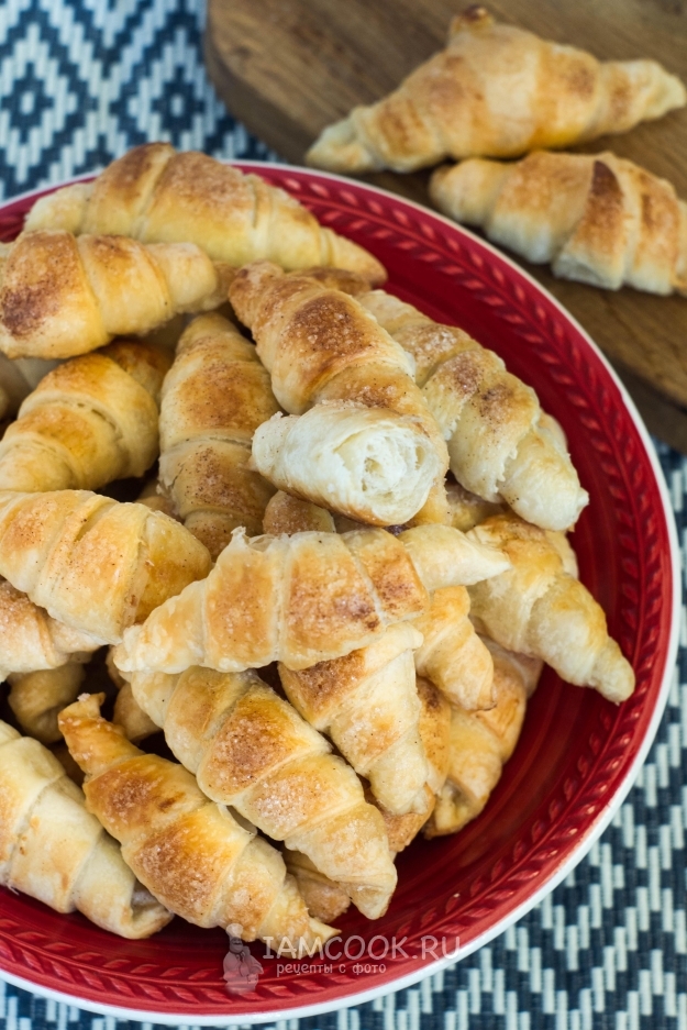 Рогалики из слоеного теста с сахаром и корицей готовить, пожалуй, проще всего! Одна из самых элементарных начинок! Магазинное слоеное тесто ускоряет и существенно упрощает процесс приготовления.