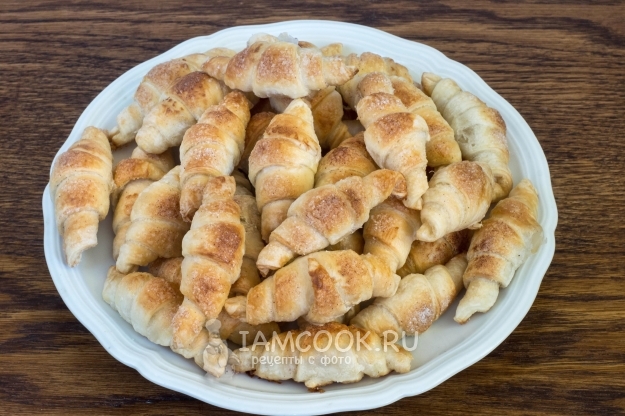 Готовые рогалики из слоеного теста с сахаром и корицей нужно вынуть и дать им остыть, затем снять с противня и подавать к столу!