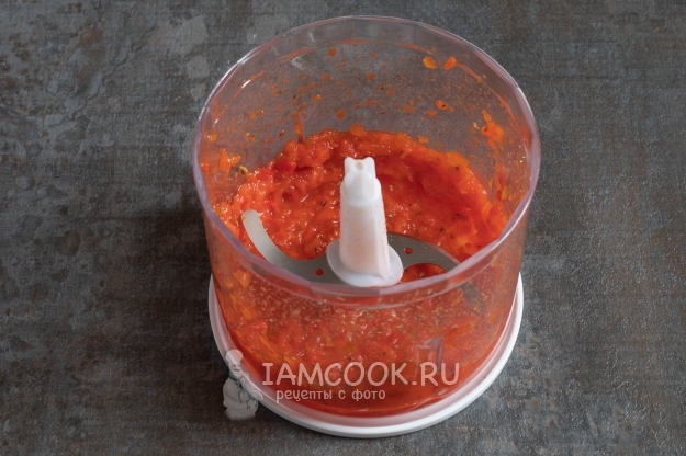 Мякоть красного перца измельчаем с орегано и солью в пюре.