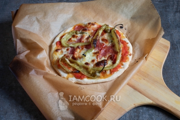 Качества теста для пиццы никакой роли не играют, можно использовать абсолютно любое. Сыр - тоже без разницы какой. Маринованные пеперони (можно заменить на кусочки перцев из лечо) и колбаса придают этой пицце тонкую кислинку и остроту. Главное - основной красный перец. Так вот, он должен быть интенсивным по вкусу. У этого овоща вкус определяет запах. Если красный сладкий перец без запаха - он никогда не будет обладать интенсивным вкусом. Исходите в приобретении ингредиентов из этого, иначе получите не вкусную пиццу с перцем и колбасой, а безвкусную ерундовину, при поедании которой вы будете ругать меня за то, что я заставила вас помучиться с ошкуриванием перцев, в то время как было куда проще взять рубленые помидоры для пиццы.