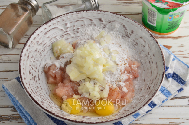 Подготовьте все необходимые продукты для приготовления рубленых куриных котлет на пару.