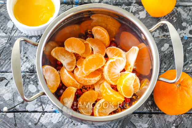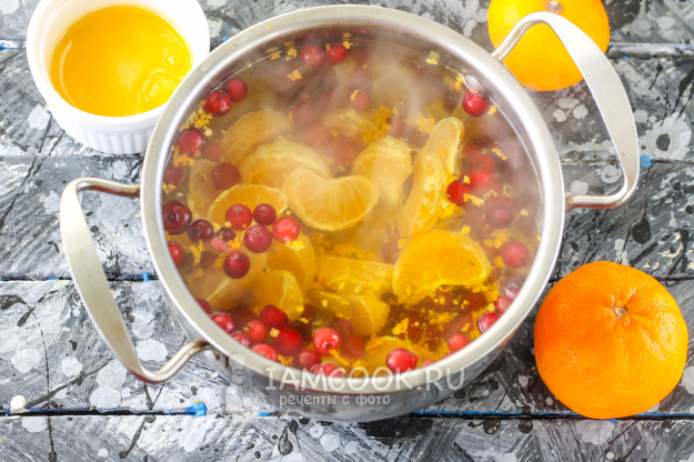 Настоящий праздник вкуса - компот из клюквы и мандаринов! Этот напиток традиционно зимний, так как именно зимой в продаже имеются оба основных продукта. Любой взрослый или ребенок с удовольствием продегустирует ароматный компот, ведь он не только вкусный, но и очень полезный, особенно если вы добавите в него мед. Главное - у вас не должно быть аллергии на эту сладость, хотя допустимо заменить мед сахаром, сиропом и т.д. Только помните, что мед добавляется в напитки, температура которых не превышает 35 градусов, поэтому отваренный компот нужно слегка остудить. В горячей жидкости мед утратит свои полезные свойства, но не утратит сладость и не превратится в канцероген - это сказки!