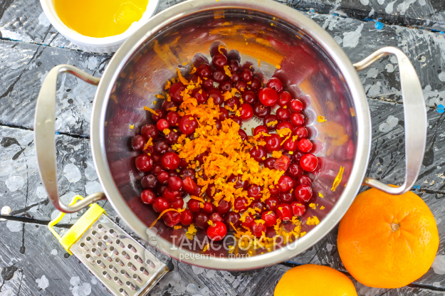Ошпарьте мандарины кипятком, натрите их цедру на терке с мелкими ячейками прямо в кастрюлю - используйте всё по максимуму!