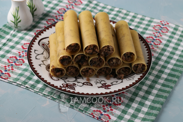 Наполнить фаршем каннеллони. Плотно не набивайте, иначе они могут лопнуть.