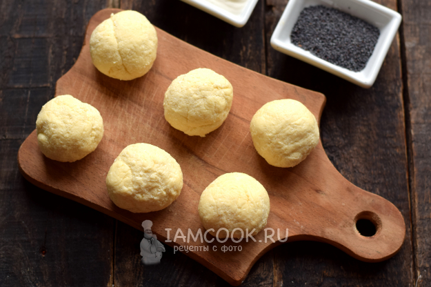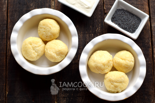 Замесите густое тесто, которое будет липнуть к рукам. Из теста сформируйте крупные шарики примерно одинакового размера.