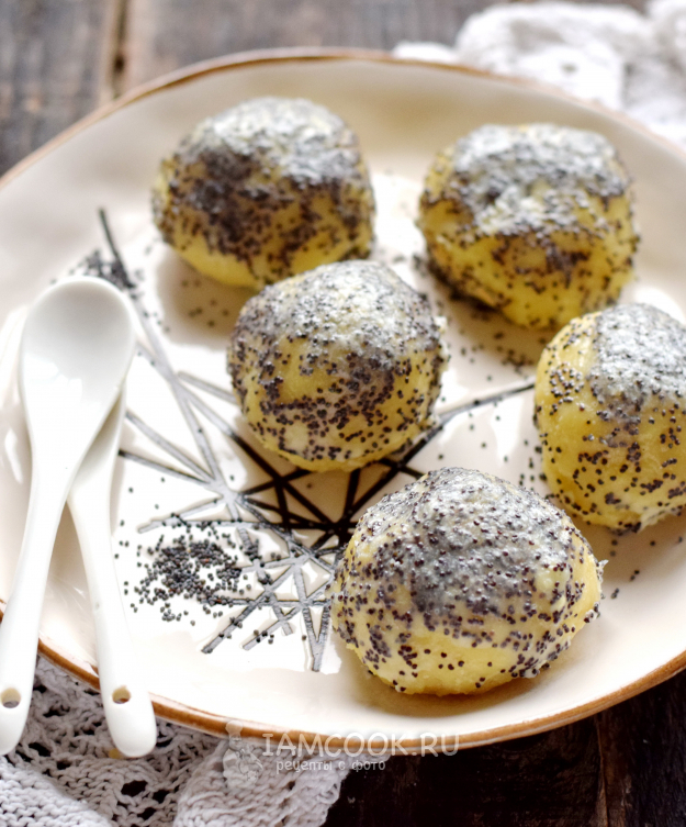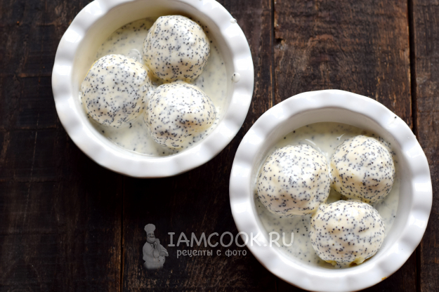 Сырные бабки — очень нежное блюдо из творога в виде крупных биточков. Они напоминают больше ленивые вареники, чем сырники, поскольку варятся в воде. Для получения насыщенного вкуса после варки сырные бабки запекаются в духовке под сливочным соусом. Соус готовим на основе сметаны и мака. Блюдо получается очень нежным, отлично подходит для детского меню.