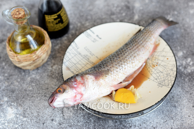 Почистите пеленгаса от чешуи, внутренностей, удалите черную пленку внутри брюха и не забудьте про жабры. Помойте рыбу под проточной водой. Полейте ее лимонным соком, соевым соусом, чуть сбрызните постным маслом, посолите и поперчите по вкусу.