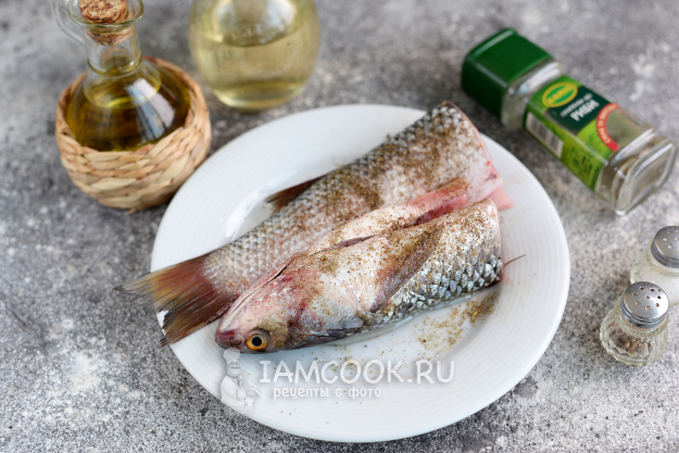Пеленгаса очистите от чешуи, удалите внутренности, не забудьте про черную пленку внутри брюха, вырежьте жабры. Рыбу посолите, поперчите снаружи и внутри, посыпьте приправой для рыбы, сбрызните уксусом и маслом. Если рыба большая и длинная, разрежьте ее пополам.