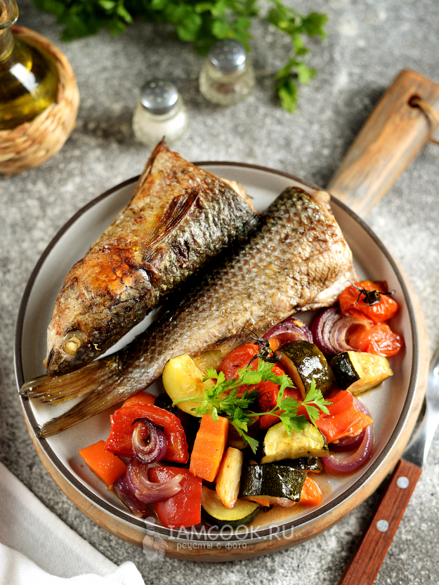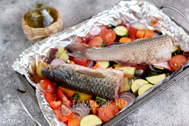 Вкусный и полезный пеленгас с овощами в духовке готов.