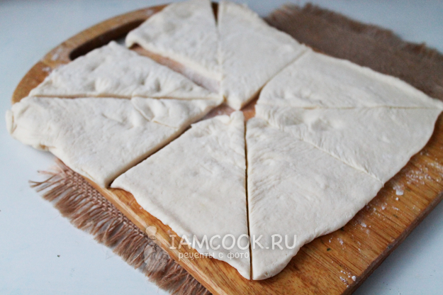 Закрутите рогалики трубочкой от широкого конца.