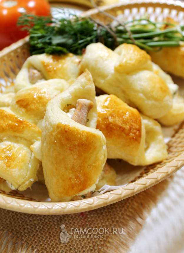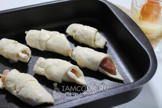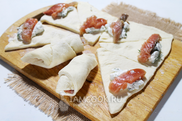 Румяные и пышные закусочные рогалики с красной рыбой готовы!