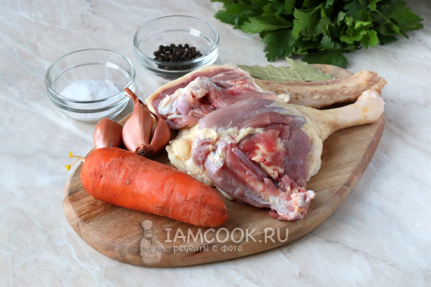Для приготовления гусиного бульона подготовьте продукты по списку к рецепту.