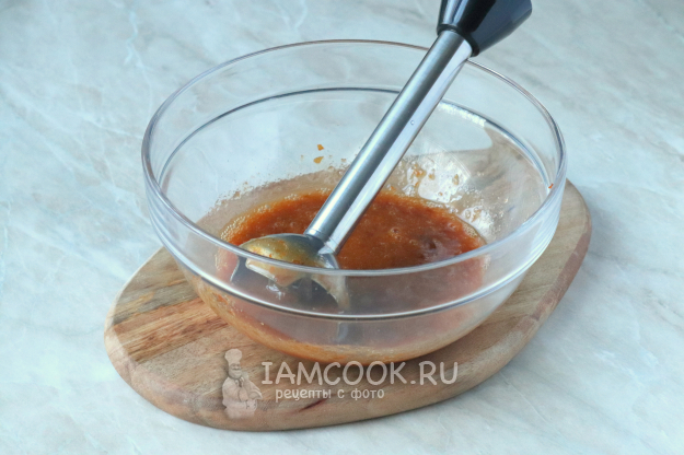 В подходящую миску переложите варенье. Если оно у вас дольками или не совсем однородное, лучше воспользоваться погружным блендером.