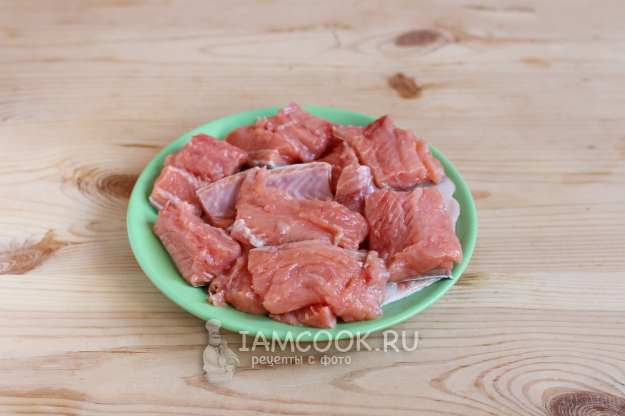 Если у вас горбуша, как у меня, замороженная, в первую очередь разморозим ее, но не полностью. Пока она плотная, ее очень удобно разделать. Разрежем рыбку пополам вдоль хребта, удалим хребет, но не нужно его выбрасывать, он пригодится для ухи, ссылку на которую я давала в начале рецепта. Поэтому завернем в пакет и уберем в морозилку до удобного случая. Удалим из кусков филе большие кости и нарежем рыбку кусками среднего размера. Шкурку срезать не нужно.