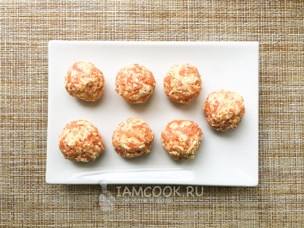 Можно подать эти шарики на листьях зеленого салата, получится еще и красиво, а не только вкусно.