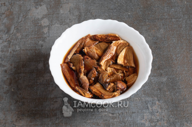 Сначала замачиваем сушеные грибы в небольшом количестве воды.