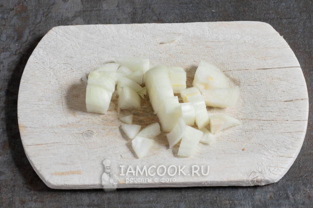 Режем лук и засыпаем к баранине по мере готовности. То есть нарезали - вмешали в жарящееся мясо - нарезали следующую порцию - вмешали.
