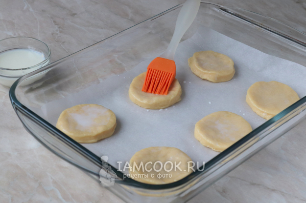 Сметану можно использовать любого процента жирности (у меня - 15%), а чтобы выпечка имела красивую румяную "внешность", перед отправлением заготовок в духовку, смажьте их молоком.