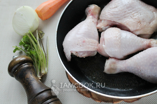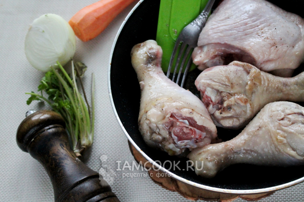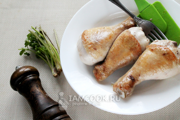 Тем временем курица на сковороде зарумянилась. Выньте голени из сковороды на тарелку.