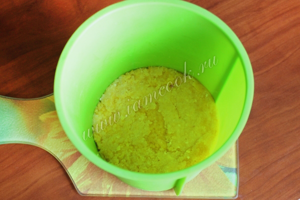Поместите поленту в форму и утрамбуйте, очень удобны для этих целей силиконовые.