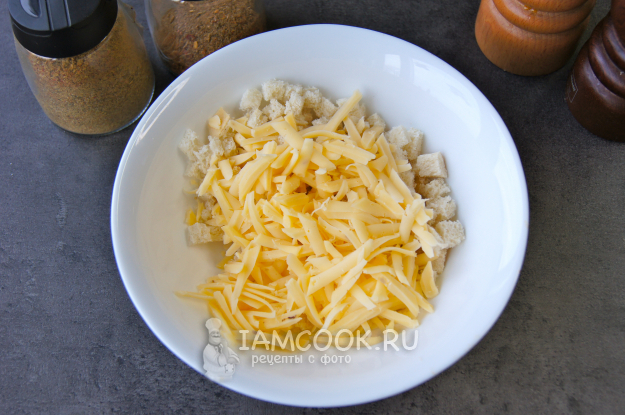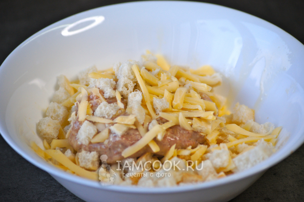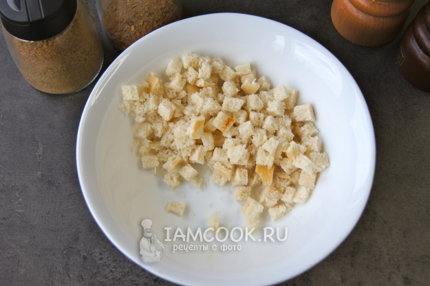 В отдельную миску нарезала маленькими кусочками подсохший белый хлеб.