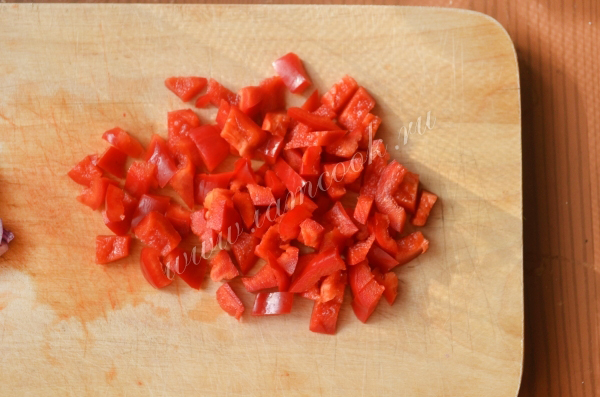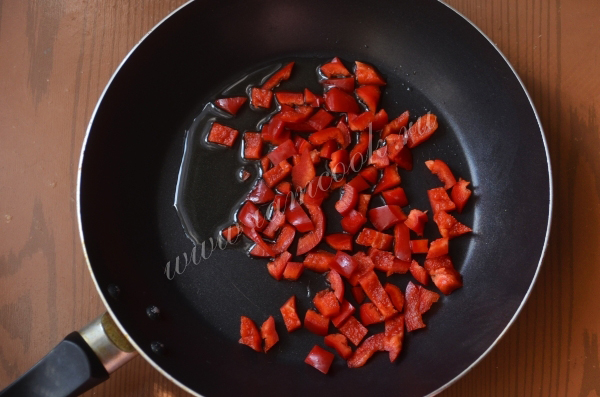 Сладкий перец обжарить на оливковом масле 2 минуты.