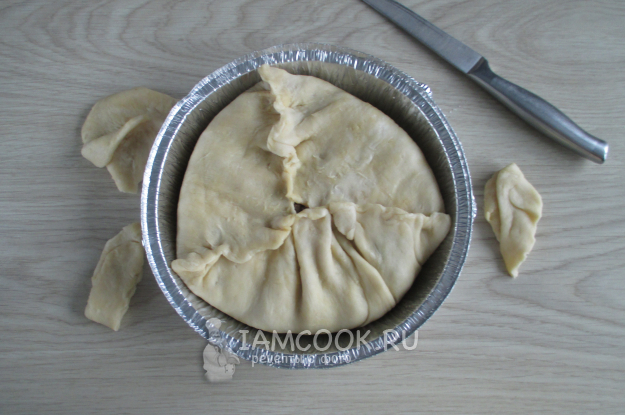 Закройте сверху тестом и отрежьте его излишки.