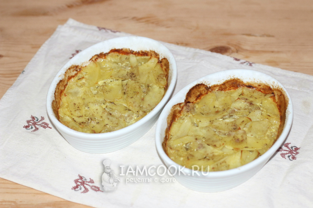 Как только картофель начнет румяниться, можно доставать формы, потому что блюдо будет полностью готово.