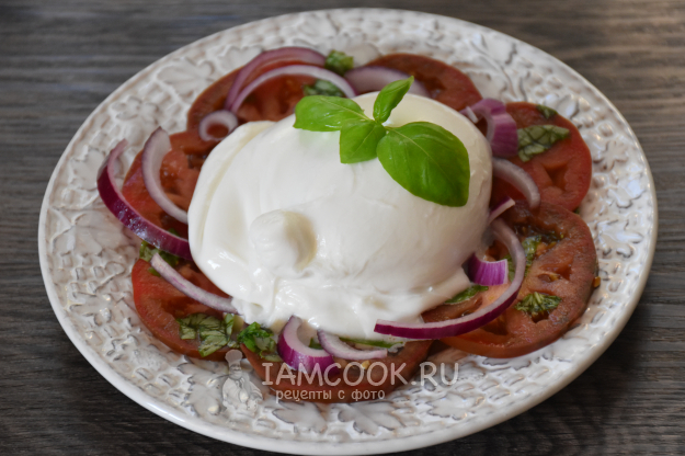 Предлагаю приготовить довольно популярный в Италии салат с бурратой и помидорами.