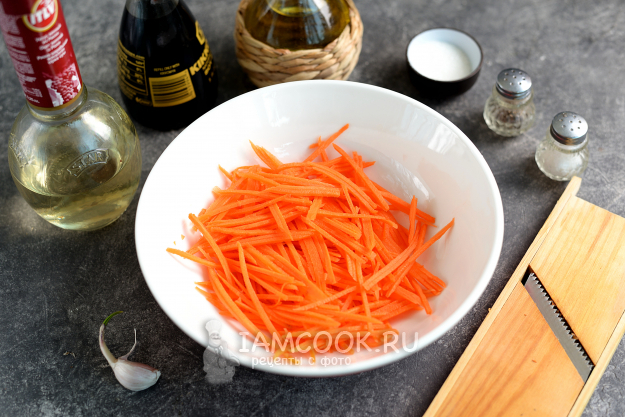 Морковь очистите от кожуры, помойте, обсушите, натрите на специальной терке, сложите в глубокую миску.