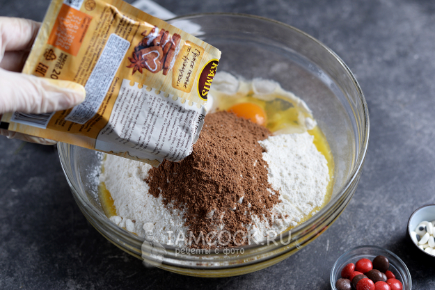 Всыпьте просеянную муку, щепоть соли, смесь для печенья или специи, вбейте яйцо. Муку добавляйте постепенно, в зависимости от категории яйца ее может понадобиться больше или меньше.