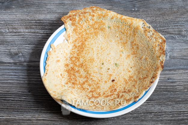 Выпекаем блины. На обычной сковороде их пекут в небольшом количестве масла, на антипригарной должно получаться и без масла.