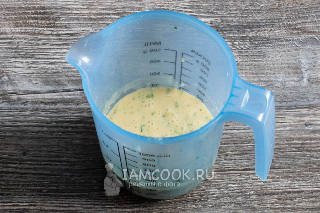 Делаем сначала сравнительно густое тесто из муки с яйцами, коньяком, маслом и петрушкой, а потом вливаем в него, продолжая взбивание, молоко тонкой струйкой. Должна получиться пенистая жидкость.