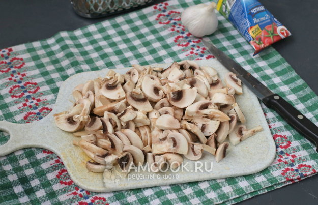 Шампиньоны нарезать пластинками.