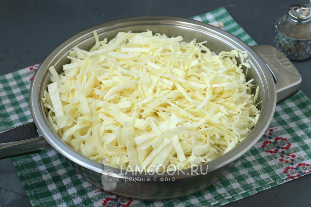 Тонко нашинковать капусту.