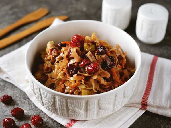 Мне очень понравилась такая капусточка и сама по себе, со свежей сметаной.