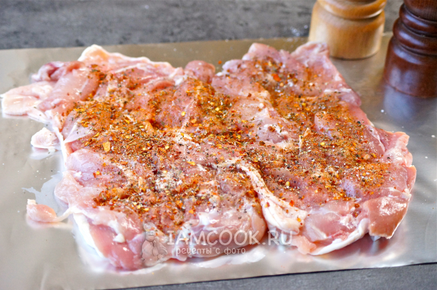 Уберите на 3-4 часа в холодильник, чтобы рулет пропитался специями.