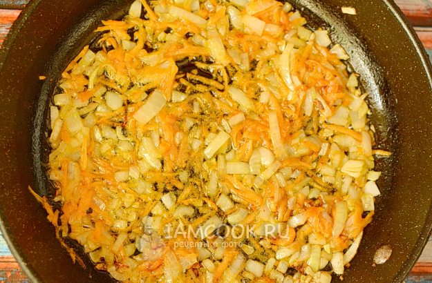 А пока мясо обжаривается, натрем морковку и нашинкуем лук.