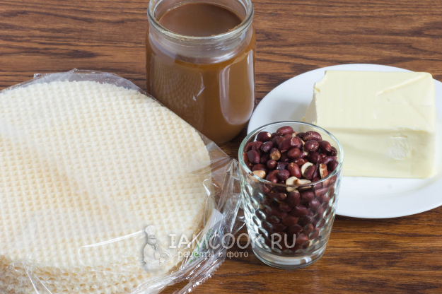 Вафельный торт с арахисом - это лакомство, которое можно себе позволить не часто. Уж очень он калорийный и сытный! Но готовится тортик легко и быстро, что подкупает. На большую компанию, каждому по ломтику - в самый раз! Важно взять качественное сливочное масло: натуральное и свежее, проверенного производителя.
