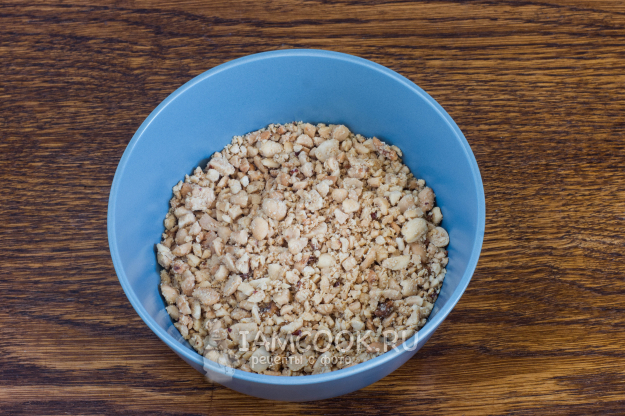 Арахис почистите и измельчите в неоднородную крошку (я толкла в ступке).